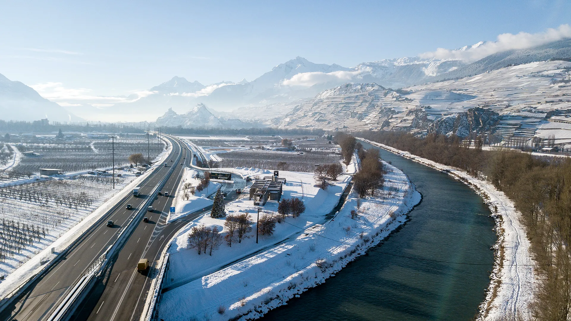 - die sich daraus ergebende Fragmentierung, die visuell insbesondere aufgrund der Walliser Topographie sehr stark in Erscheinung tritt, und die sich auch auf die natürlichen Lebensräume stark auswirkt